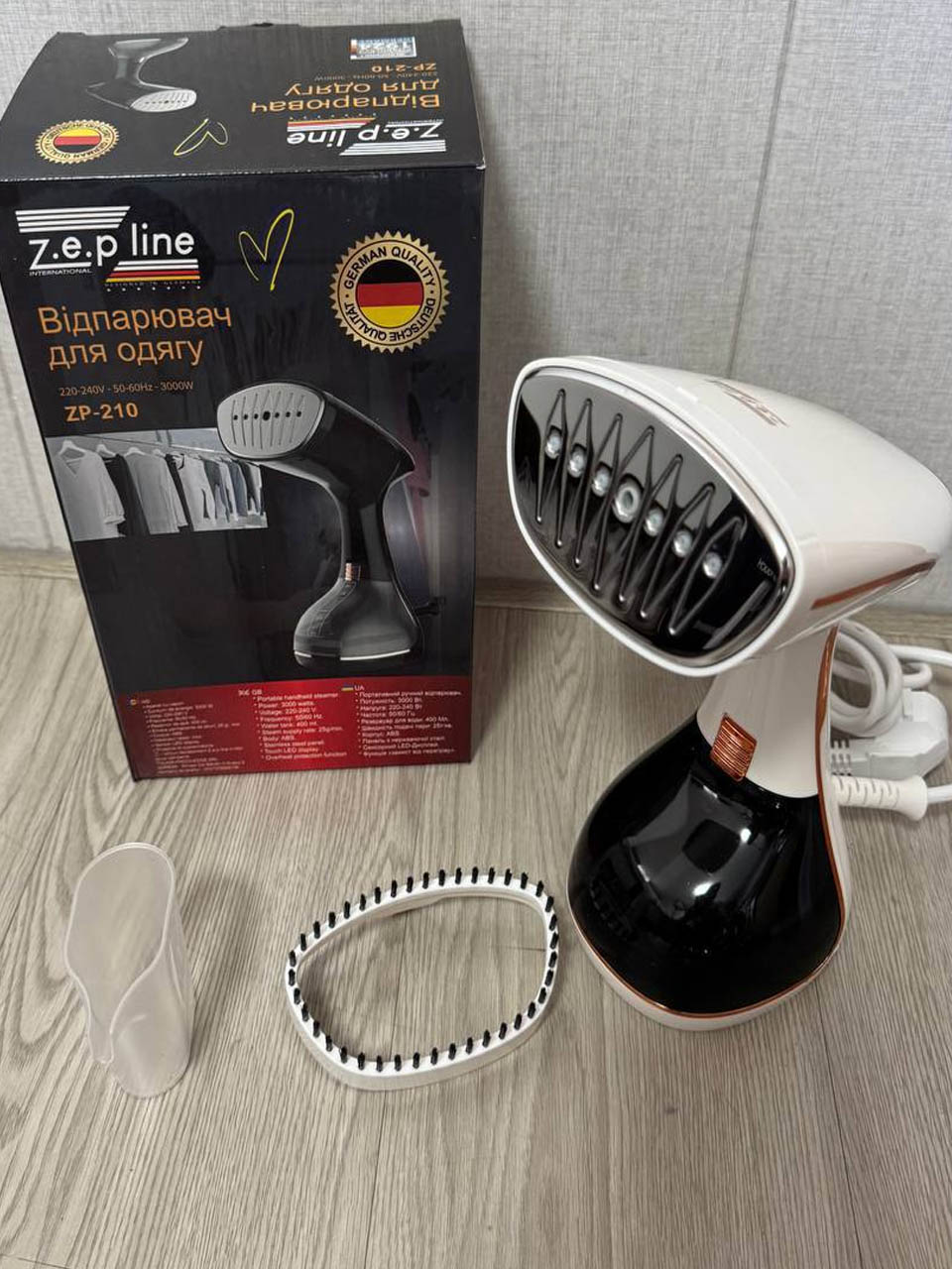 У комплекті ви отримаєте м’яку щітку для видалення ворсу — ідеальний аксесуар для догляду за пальто, піджаками та светрами. Zepline ZP-210 — це ваш надійний помічник у щоденному догляді за гардеробом, який поєднує функціональність професійного обладнання з домашнім комфортом.